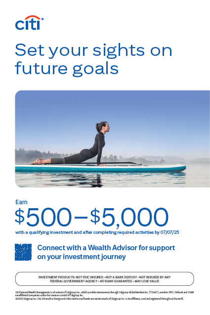 The path forward is yours to shape, and with Citi’s extensive financial tools and resources, you can continue on your journey to financial success.